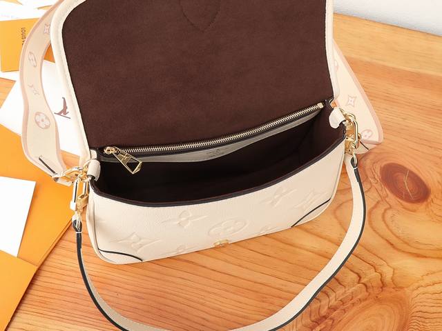 P 变码芯片版顶级原单、加强版 Diane 手袋取材路易威登经典 Monogram Empreinte 压纹皮革,将品牌标识织入可拆卸宽幅提花肩带,在可拆卸皮革肩背带之外再添斜挎选择,灵活契合优雅格调或动感风尚。