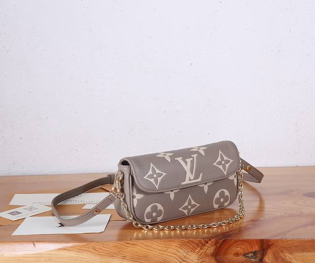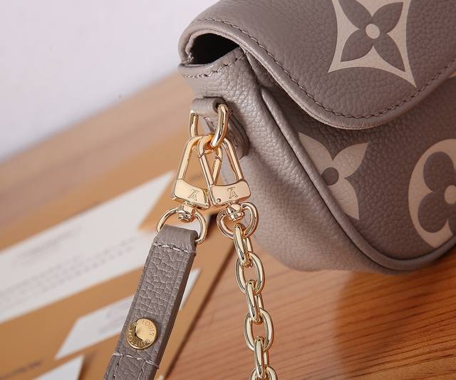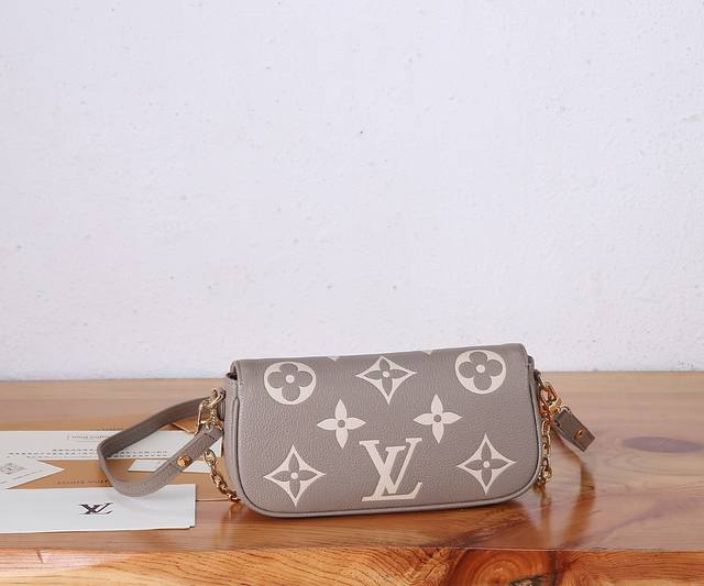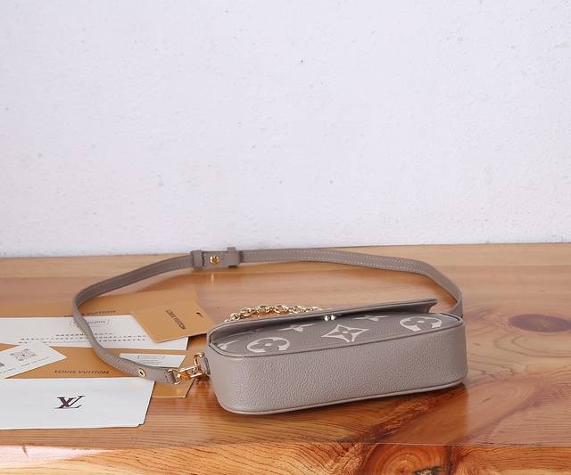 P 顶级原单、加强版本款 Wallet On Chain Ivy 手袋为 Monogram Empreinte 粒面皮革压印大号 Monogram 图案,塑造柔软舒适的贴身构型。磁扣翻盖开启充裕空间,轻松收纳日常所需。宛如珠宝的链条和可调节皮革肩带均可拆卸,实现多种背携方式,出席昼夜场合皆宜。