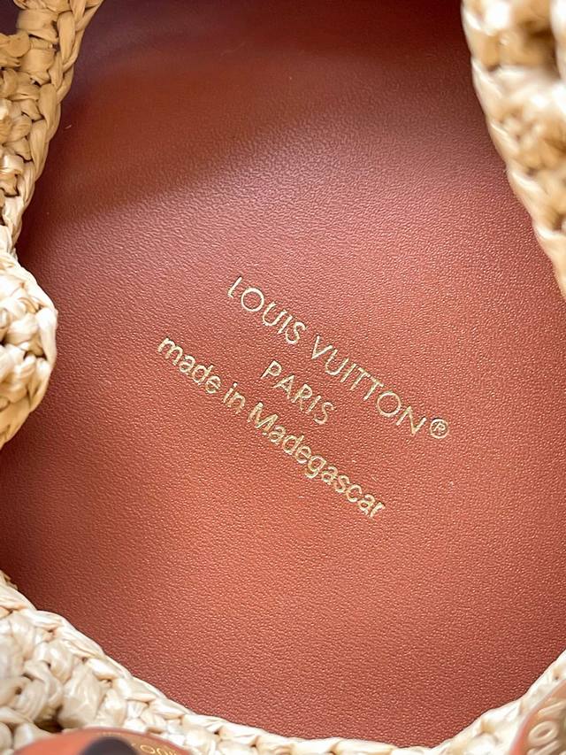 本款 Noe Purse 手袋为钩编拉菲草搭配皮革