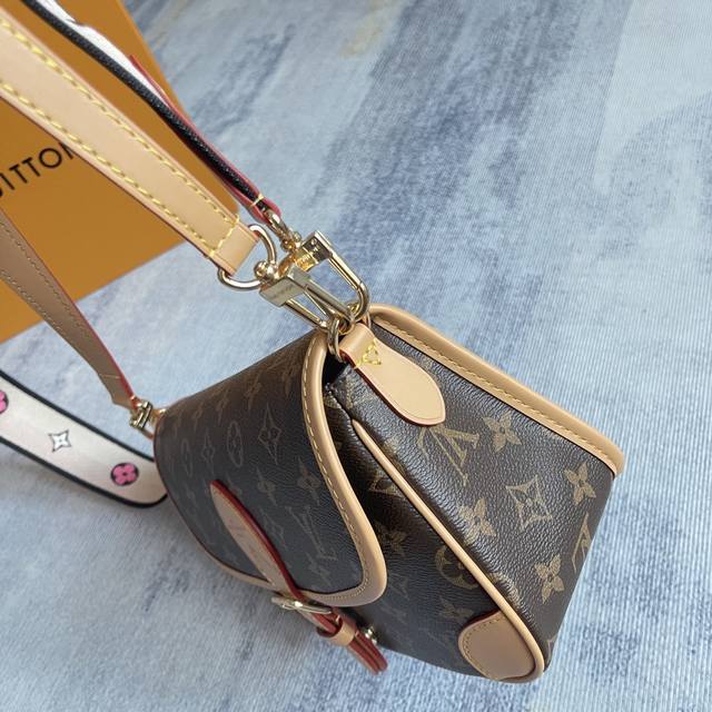 动态163C01芯片 顶级原单加强版 Diane 手袋重塑 1990 年代的经典设计,为 Monogram 帆布包身融入皮革边角和传统搭扣等复古元素,搭配口袋和齐整内层。宽幅提花肩带两面分别呈现醒目路易威登标识和 Monogram 花卉。