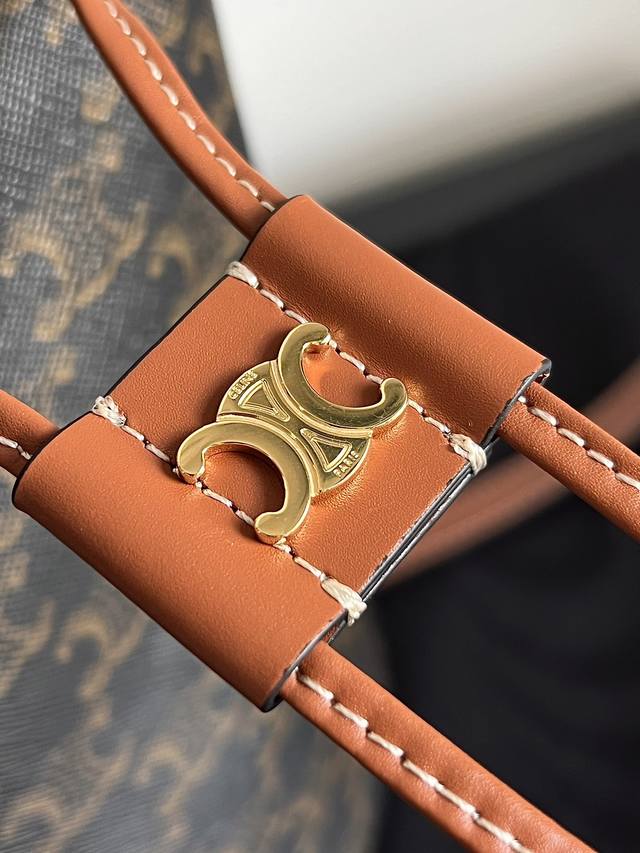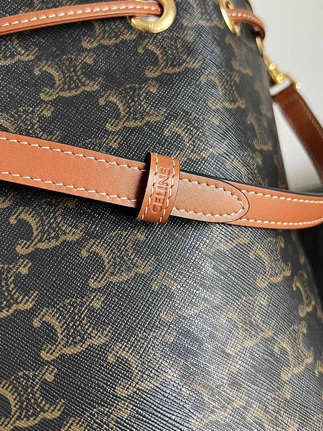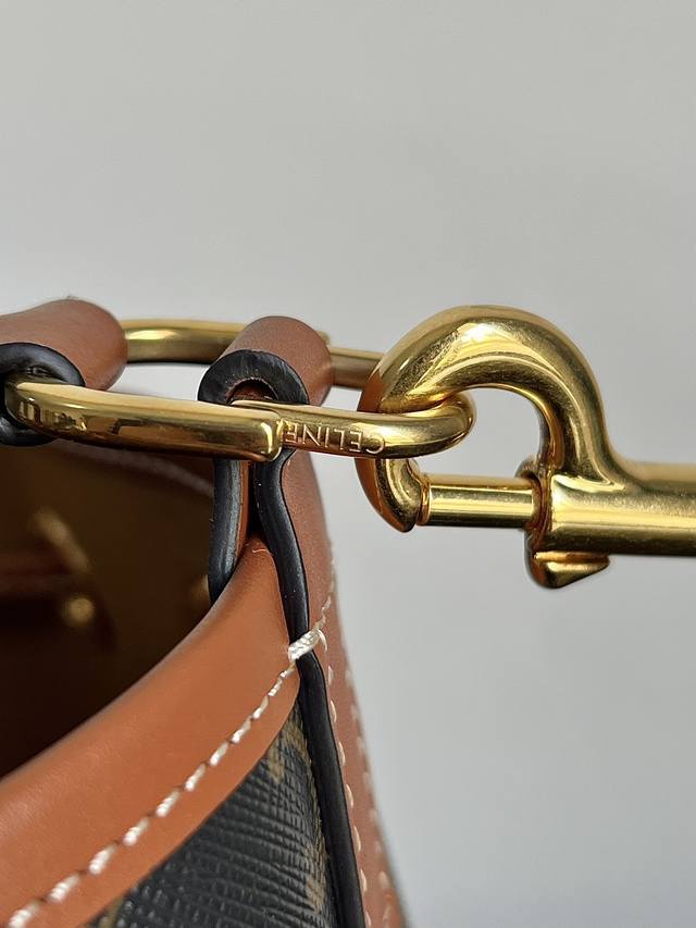 / 原厂皮全钢五金 新款抽绳手提桶老花Clara标志印花牛皮革手袋,尺寸:20 X 24 X 20Cm,编织印花牛皮革包边,织物衬里,金色饰面,可手提肩背斜挎,配1