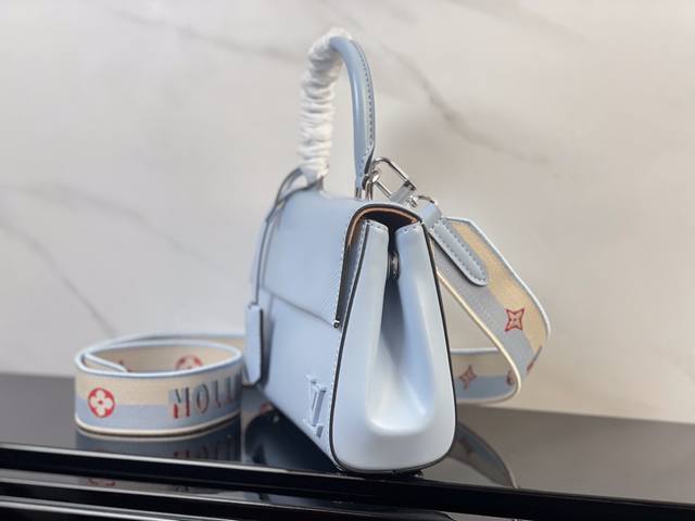 M58928蓝色 顶级原单 本款 Cluny 迷你手袋展现可拆卸提花肩带的两式风尚:路易威登标识宣示品牌身份,翻转即现 Monogram 花卉的悄然绽放。Epi