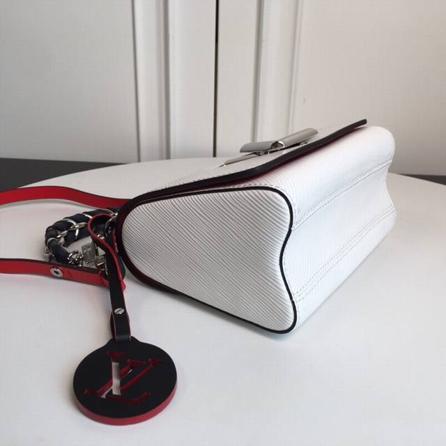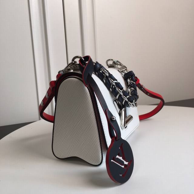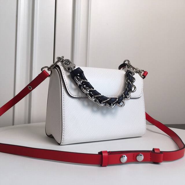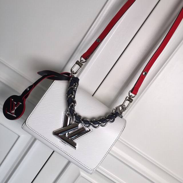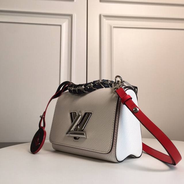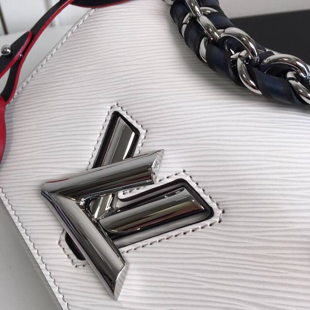 与18年冬季新造型相搭配的Twist中号手袋。由Epi皮革裁制而成,饰有Twist锁扣,搭配织入皮革的短链手柄,凸显对比感。色彩斑斓的Lv饰件,为此款时髦的手工包袋增添趣味。饰件和皮革肩带均可拆卸,更为百搭。