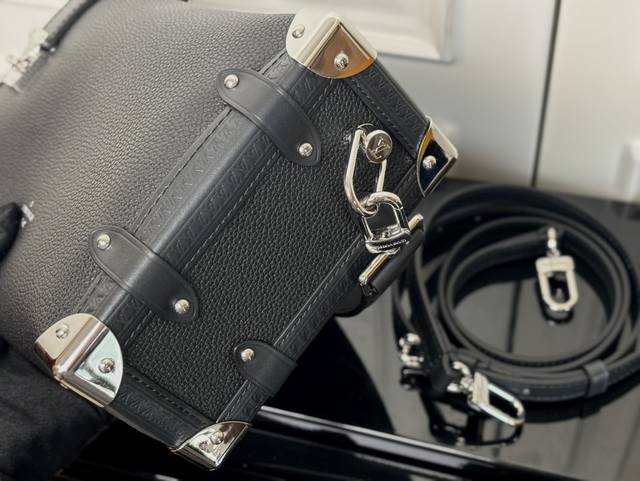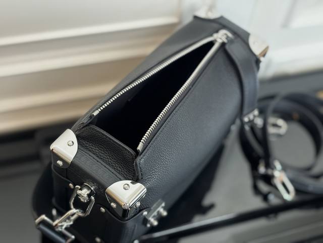 专柜同步电子芯片内码出货 Nicolas GhesquièRe以本款雅致Side Trunk 中号手袋致意品牌传统硬箱。粒面牛皮革包身点缀光滑牛皮革饰边、S-Lock 锁扣与金属质感加固包角。手柄与可调节肩带均可拆卸,方便手持、肩背或斜挎。21.0 X 14.0 X 6.0 厘米 长 X 高 X 宽
