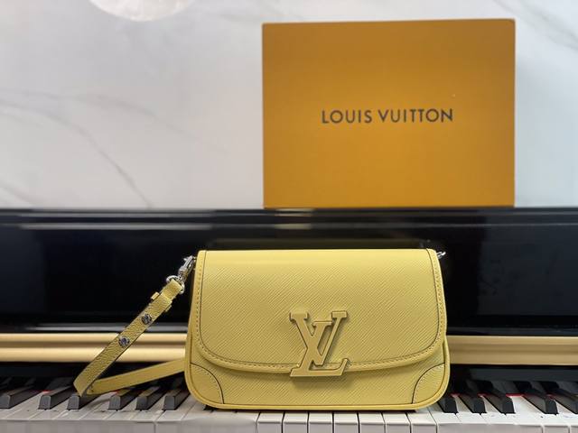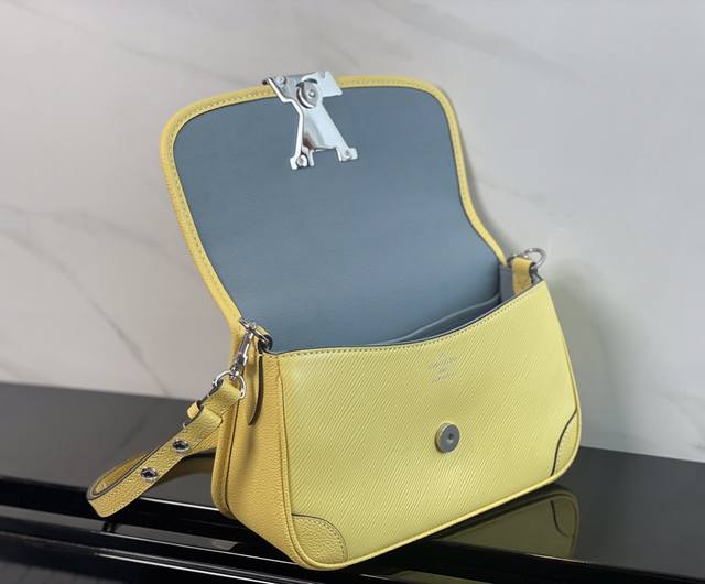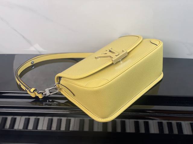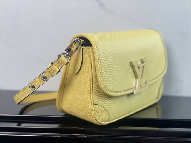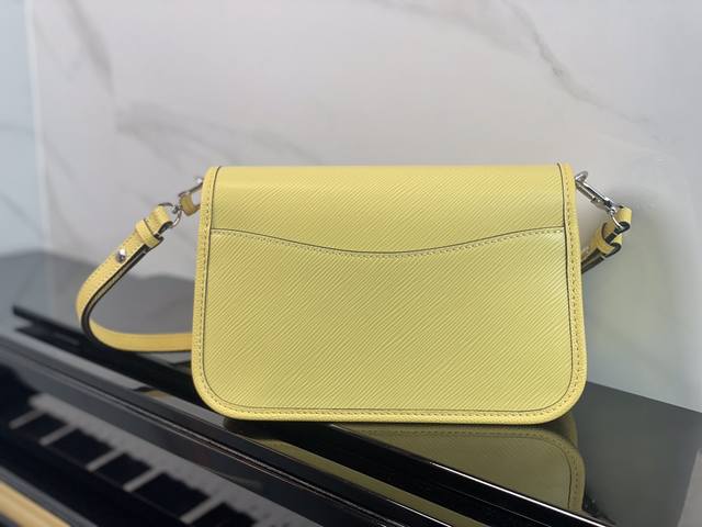 M59386小鸡黄色 顶级原单 本款 Buci 手袋取材标志性 Epi 皮革,以光滑皮革勾勒包角和衬料,成就经典柔和轮廓。树脂 Lv 标识流露摩登气息,可调节肩