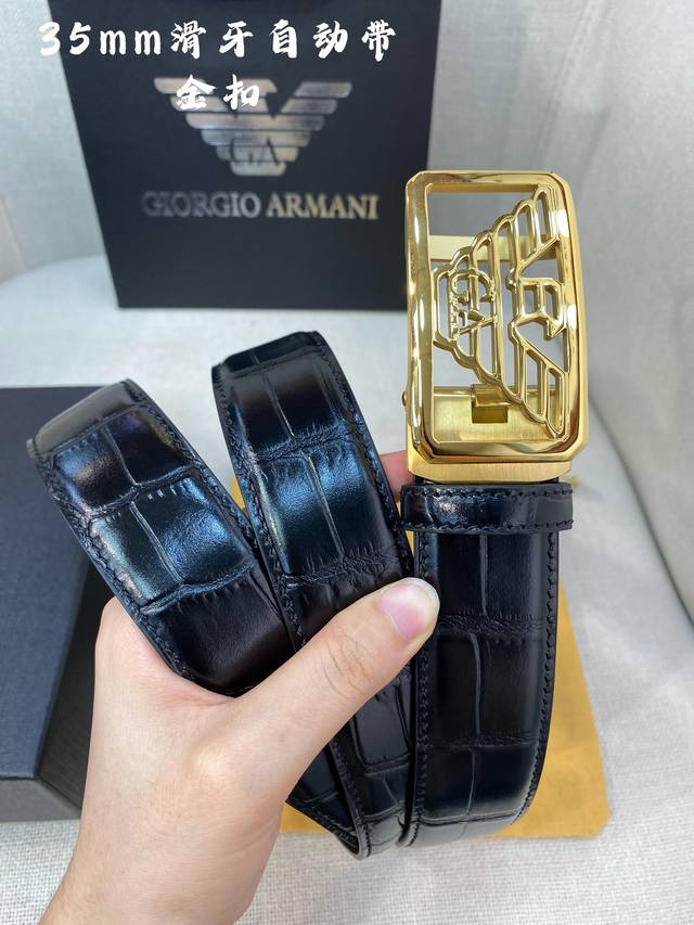 阿玛尼 意大利进口头层鳄鱼纹牛皮配平纹底,搭配真空电镀亮面纯钢自动扣,经典款式,专柜有售,市场顶级品质,支持验货 配送全套专柜包装,宽度 3.5Cm