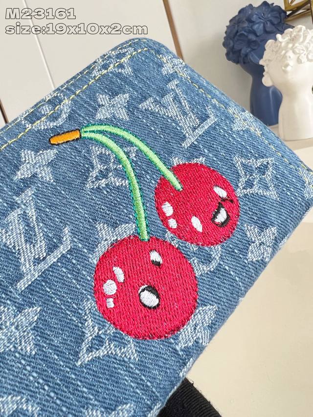 出厂价P 顶级原单 M23161 這款必備的拉鏈錢包以玩味風格重新演繹,以享負盛名的Louis Vuitton X Murakami第二版跨界聯乘系列設計登場。錢包以品牌的標誌性Monogram牛仔布製造,並綴有特大櫻桃圖案,呈現日本藝術家村上隆可愛設計的美學,注入歡樂的個性細節。錢包採用金色拉鏈設計,並內置多個可井然有序地存放名片、零錢及紙幣的隔層。19.5 X 10.5 X 2.5 厘米 長度 X 高度 X 闊度