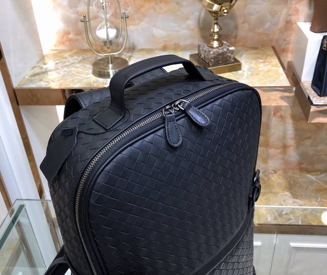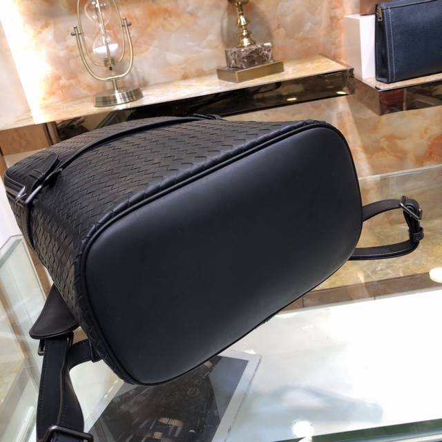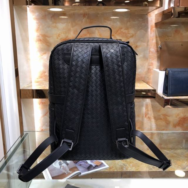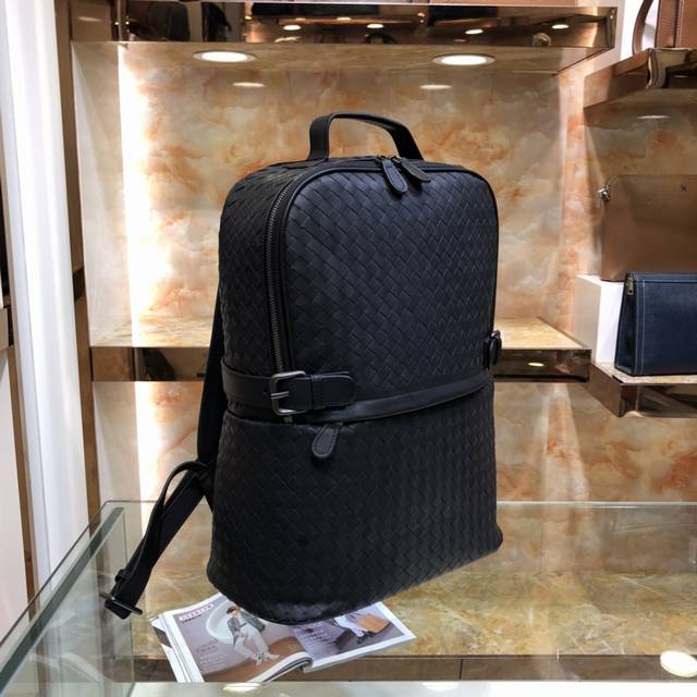 Bv 最新款男士双肩包 原单品质 官网同步 采用顶级打腊胎牛皮 手感超赞 专柜原装五金 独特的设计风格 完美至极 细节做工精致 大气中有内涵 高端上档次 高品质颜色:黑色,尺寸:39-30-18Cm。