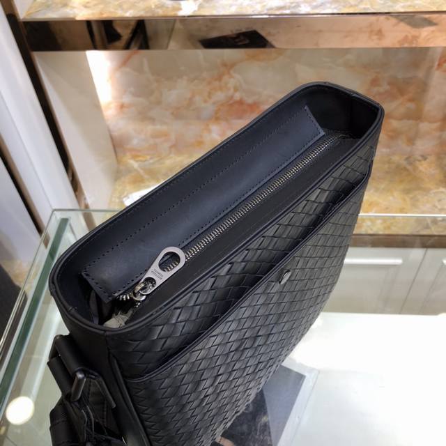 Bv 最新款男士单肩包 原单品质 官网同步 采用顶级打腊胎牛皮 手感超赞 专柜原装五金 独特的设计风格 完美至极 细节做工精致 大气中有内涵 高端上档次 高品质颜色:黑色,尺寸:28-27-5.5Cm。