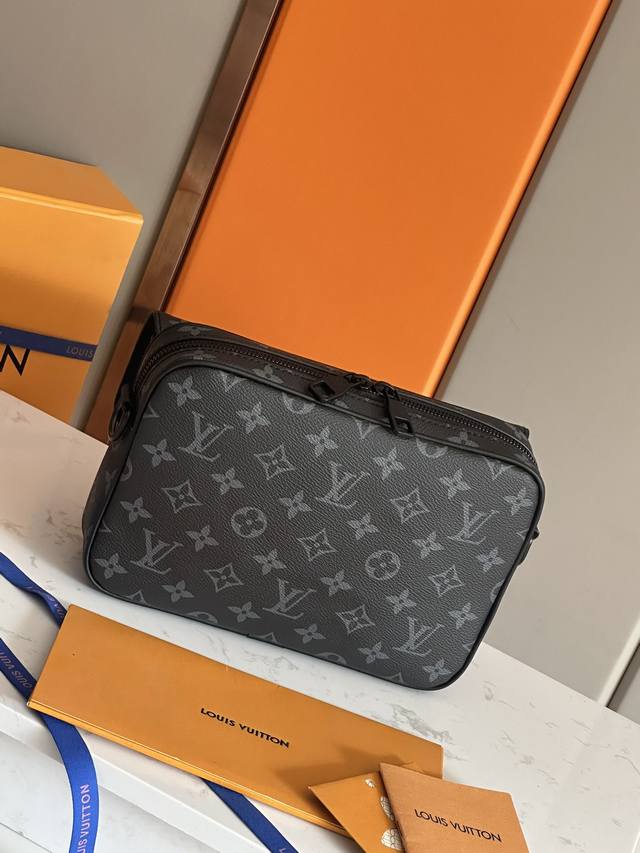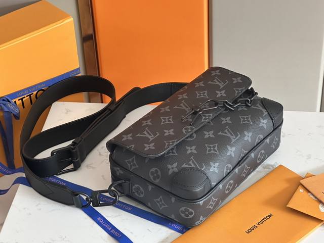 Louisvuitton 路易威登 牛皮 District 翻盖邮差包男士斜挎包 采用精湛镶嵌细工,实物拍摄 原厂原版面料 配送防尘袋 26 X 23Cm。