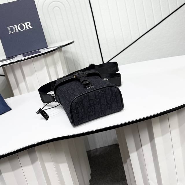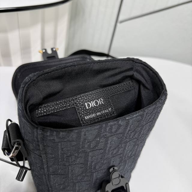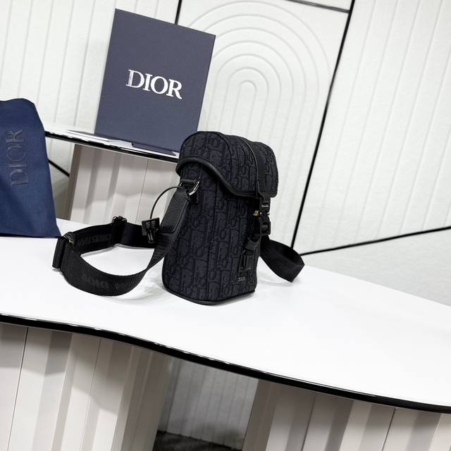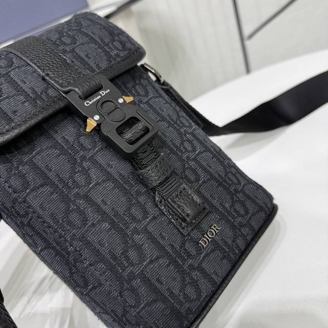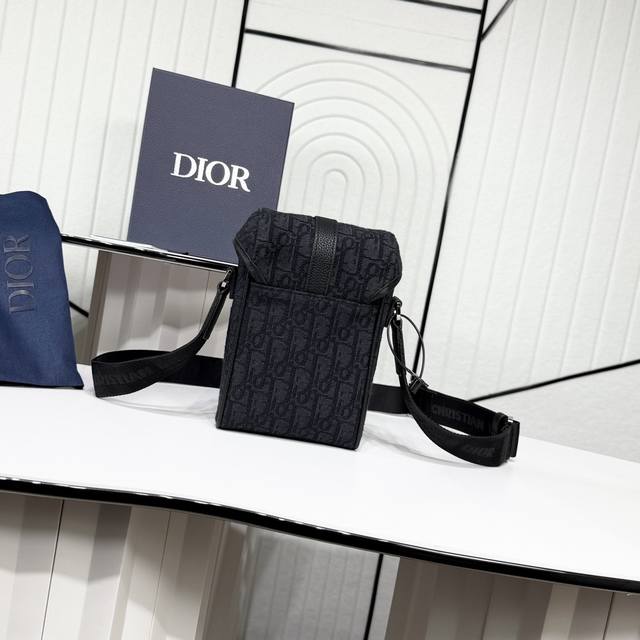 这款竖版翻盖信使包是二零二五夏季男装系列新品,现代时尚的设计充分突显 Dior 的高订风格,提升 Dior Hit The Road 系列的格调。采用黑色 Oblique 印花面料等材质精心制作,饰以同色调粒面牛皮革细节提升格调,正面点缀以 Dior 标志。翻盖