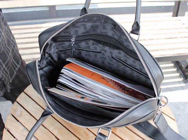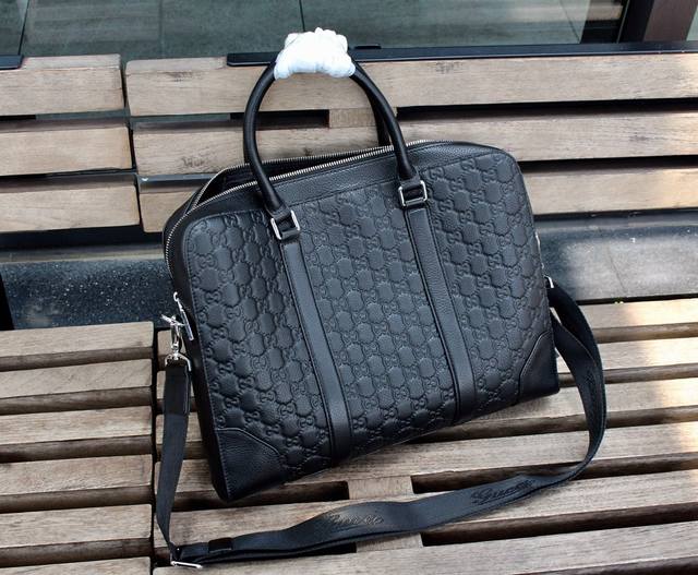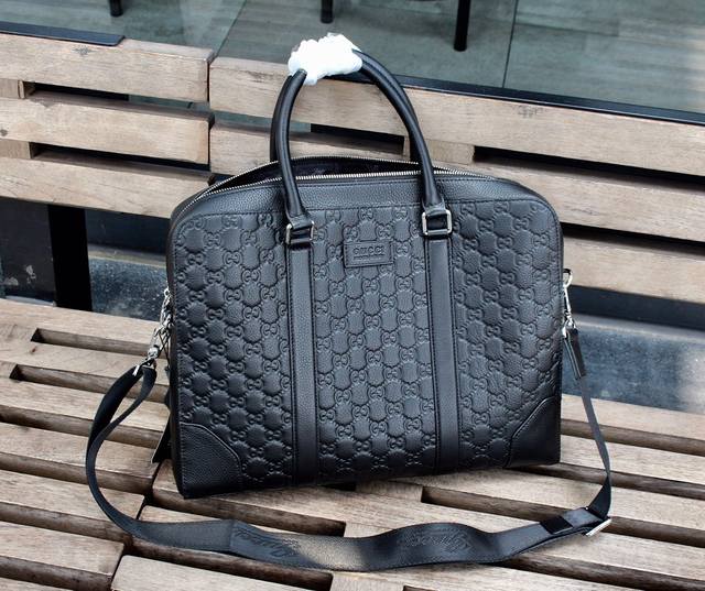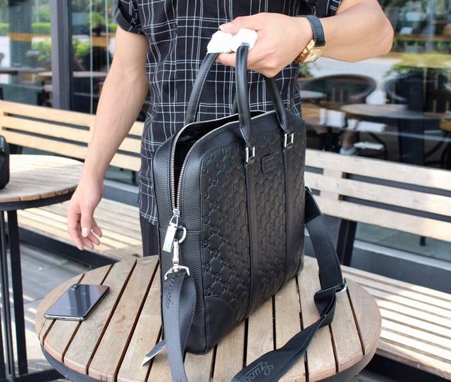 / P 。Gucci型号:33233-5。最 新款公文包出货!拉链封口采用顶级意大利牛皮进口里布!做工精湛 尺寸:38.5X29X8Cm 独家实物实拍 牛皮压G