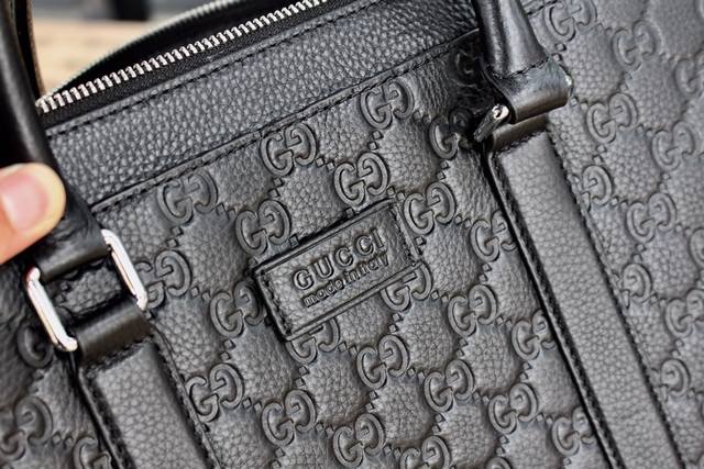 P 。Gucci型号:33233-5。最 新款公文包出货!拉链封口采用顶级意大利牛皮进口里布!做工精湛 尺寸:38.5X29X8Cm 独家实物实拍 牛皮压G