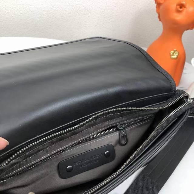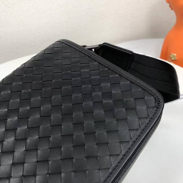 Bv编织邮差包爆款单品,此款邮差包采用纯手工编织制作而成柔软的进口打蜡小牛皮滚边使方形廓形别具魅力,低调实用皮质越用越油亮等特点型号:829#,颜色:黑色,规格:24*17*7Cm。