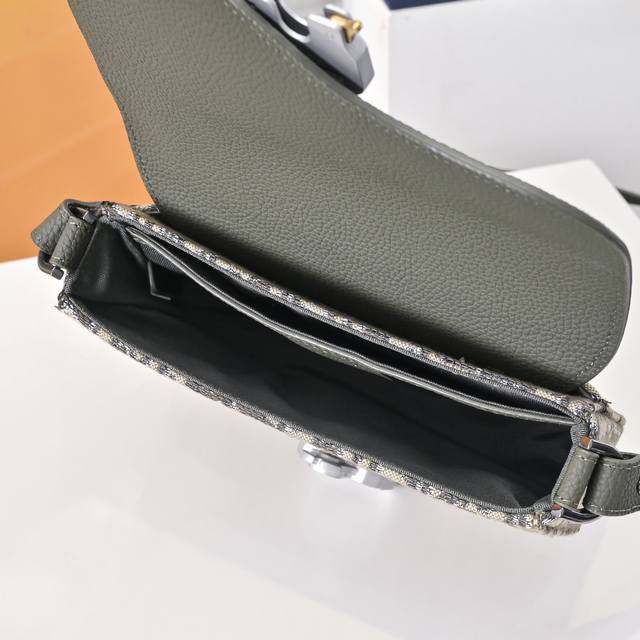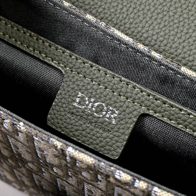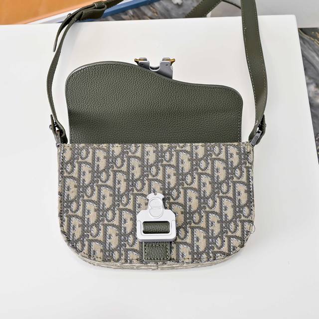 这款马鞍手拿包附有肩带,是二零二三春季男装系列推出的新款单品,采用时尚的设计,彰显精致的优雅气质,为经典的马鞍系列提升格调。采用提花面料精心制作,饰以金属光泽线和 Oblique 印花,搭配深灰色粒面牛皮革马鞍翻盖,点缀以 Christian Dior 标志铝扣。搭配可拆卸、可调节的皮革肩带,可手提、肩背或斜挎。