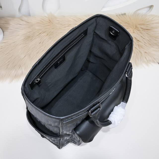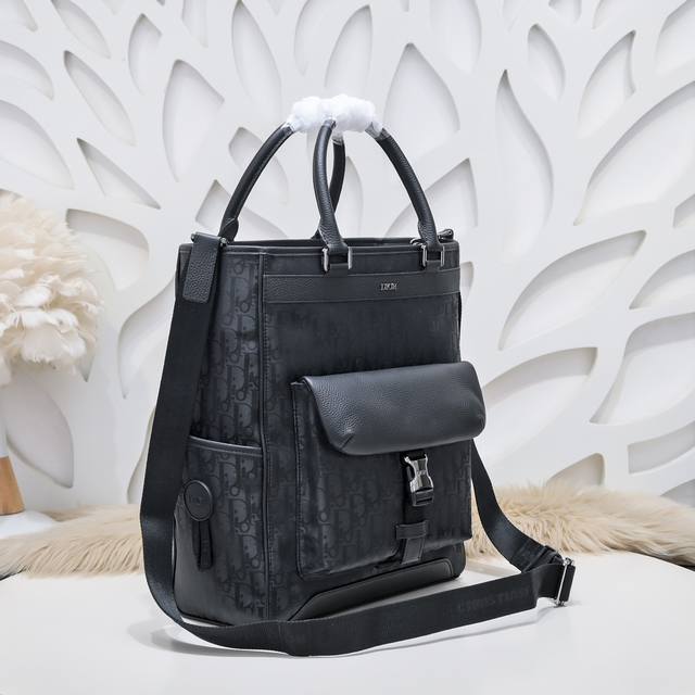 Dior-迪奥专柜最新款男士手提包 购物袋官网同步 D706 原单品质 这款手提袋是本季新品 采用黑色Oblique 印花面料精心制作 搭配奢华的黑色粒面小牛皮 皮质柔软 手感超赞 正面翻盖口袋搭配Dior标志铝扣 侧面贴边口袋饰有Dior补丁 提花肩带可拆卸可调节 可手提可肩背使用 款式新颖 独特魅力 百搭休闲实用 出街帅帅哒尺寸:30 42 14.5Cm