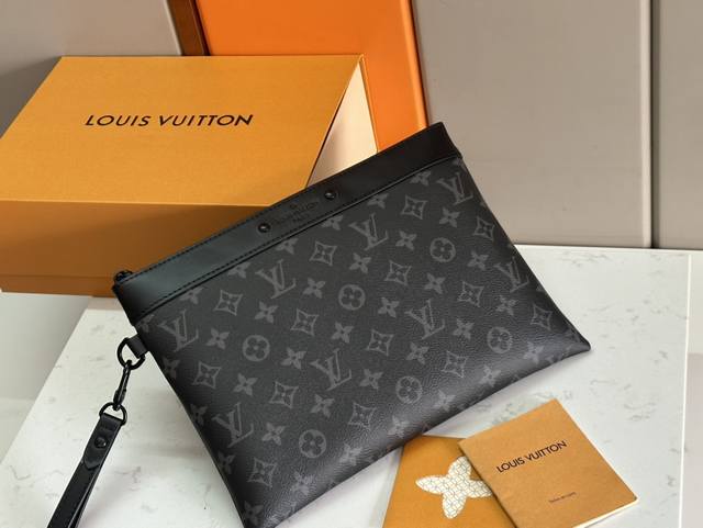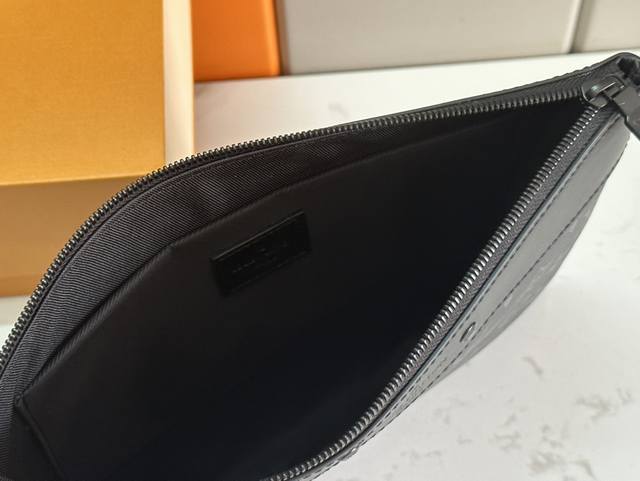 顶级原单 M81569 黑花 全新Pochette To-Go手拿包材Monogram Shadow压纹皮革,以铆钉标签含蓄展露品牌格调。充裕空间可容纳文件、小