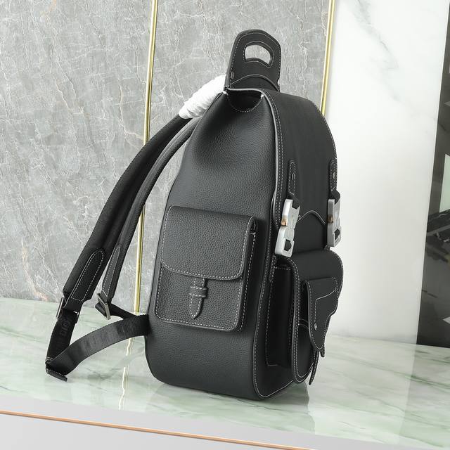 这款大号 Gallop 双肩背包采用时尚的原创设计,突显马鞍风格经典标识。采用黑色粒面牛皮革精心制作,饰以对比鲜明的缉面线,点缀以Christian Dior标志铝扣。主隔层可收纳各种日常用品,正面马鞍口袋和侧面翻盖口袋可收纳钥匙和手机,便于轻松取用。大号款式,实用百搭,是各式造型的点睛之笔。 黑色粒面牛皮革搭配对比鲜明的缉面线 内侧饰有Dior压花标志 可调节粒面牛皮革肩带 硬质顶部手柄 翻盖开合,搭配两个饰以Christian Dior标志和Cd字母的铝扣 正面马鞍翻盖口袋 两侧设有两个贴袋 内部贴袋