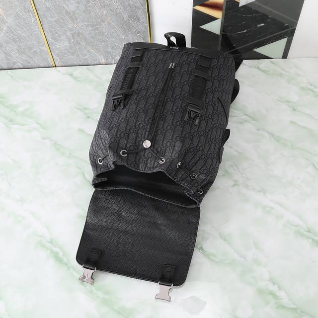 这款 Dior Explorer 双肩背包从登山运动的准则汲取灵感,经过重新诠释彰显高订风范。采用标志性的米色和黑色 Oblique 印花面料精心制作,正面饰以“Dior”标志提升格调。翻盖搭配拉链口袋,主隔层可收纳各种日常用品。侧面贴袋可收纳水瓶,便于随时取用。功能实用,是休闲造型的点睛之笔。