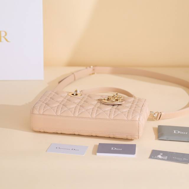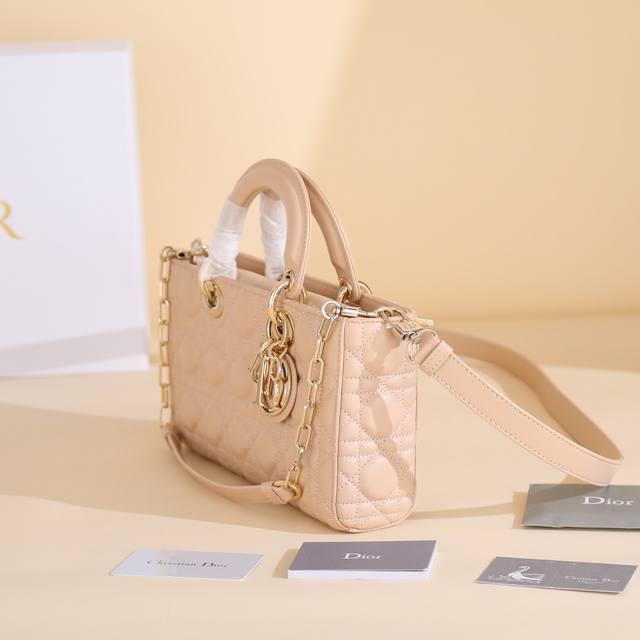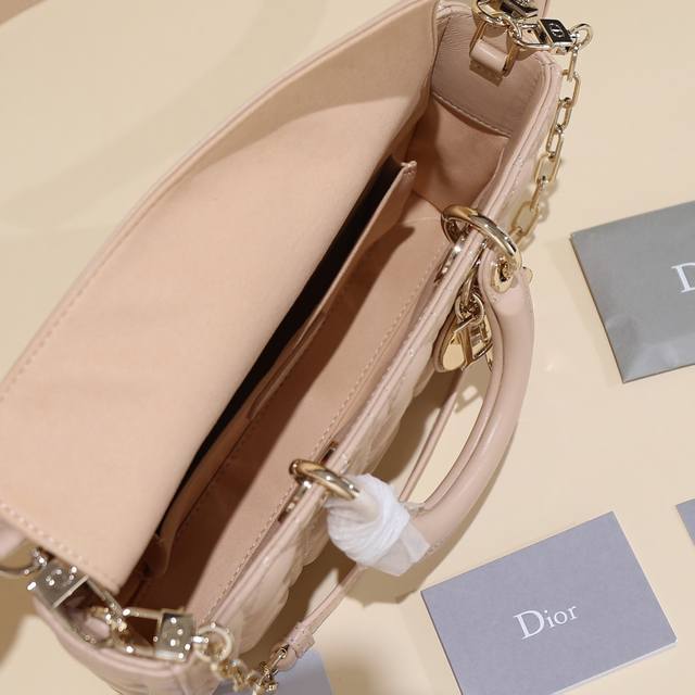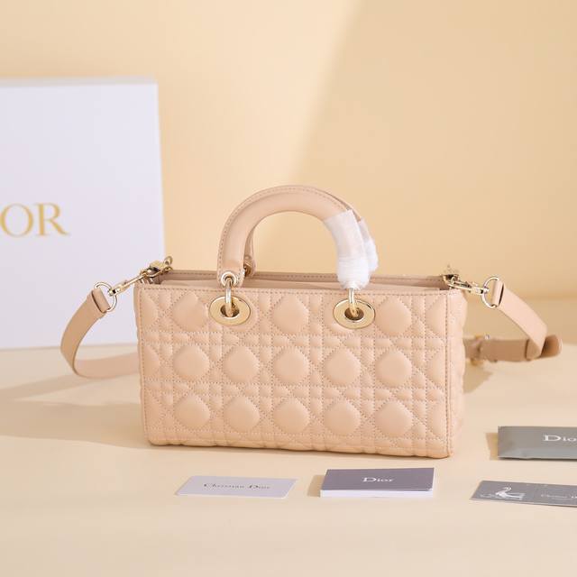 顶级原单 最高版本迪奥戴妃 横版戴妃 羊皮戴妃 杏色羊皮革藤格纹 这款 Lady D-Joy 手袋集中体现了 Dior 对优雅和美丽的深刻洞见。时髦典雅的设计经久不衰,彰显 Lady Dior 系列的简约美学。采用黑色羊