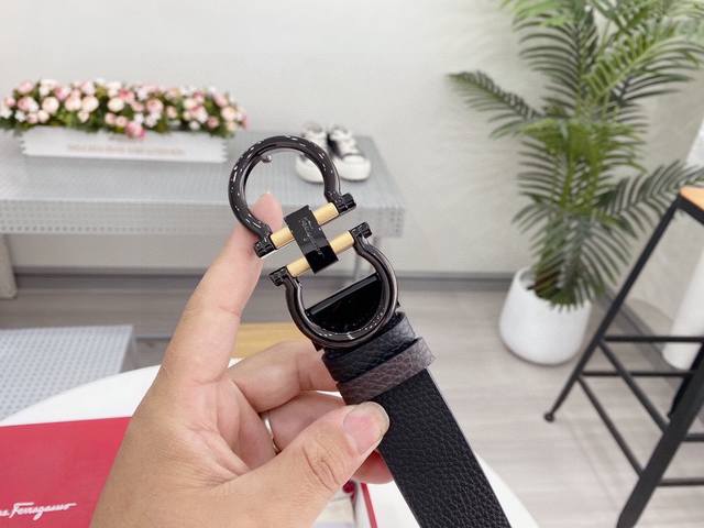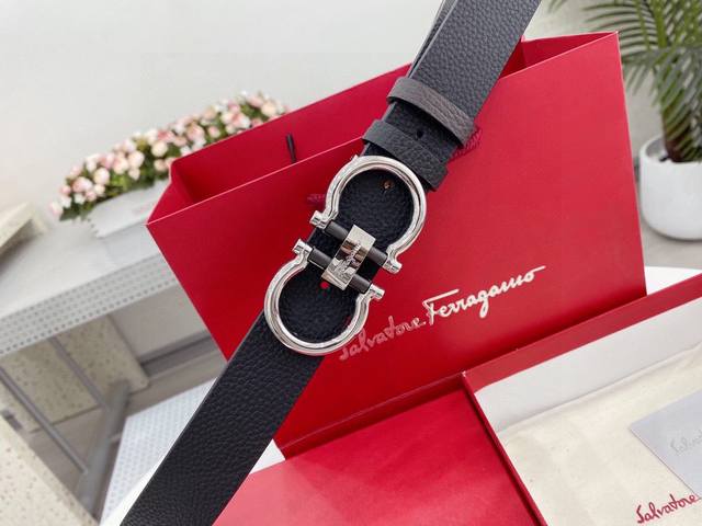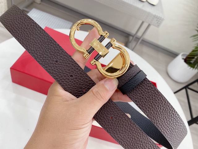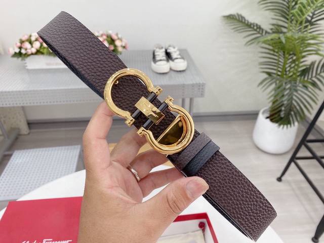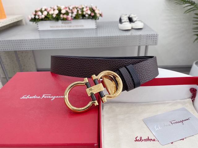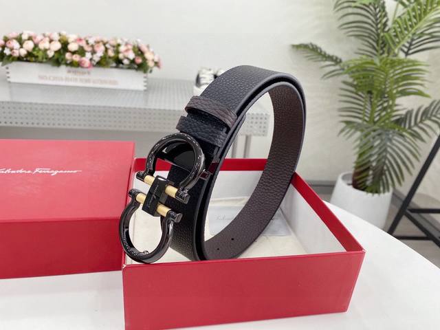 菲拉格慕 Salvatore Ferragamo 意大利 宽度3.5Cm 精美扣头 不褪色 原版意大利双面进口小牛皮 手感极佳 上身郊果棒 商务休闲两用