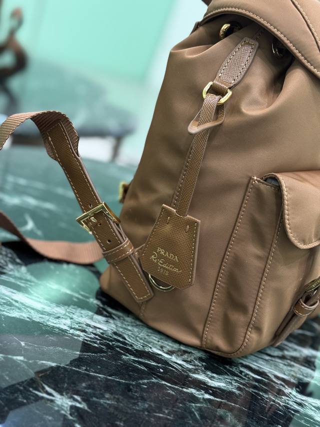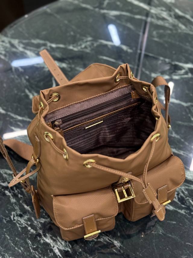 P家最经典最畅销最百搭的背包,轻便防雨容量适中,出行随性搭配 进口降落伞布料-防水防晒 正面三角搪瓷徽标十字纹牛皮饰边 抽绳内袋+前面两个拉链外袋 更是满足收纳精致需求。