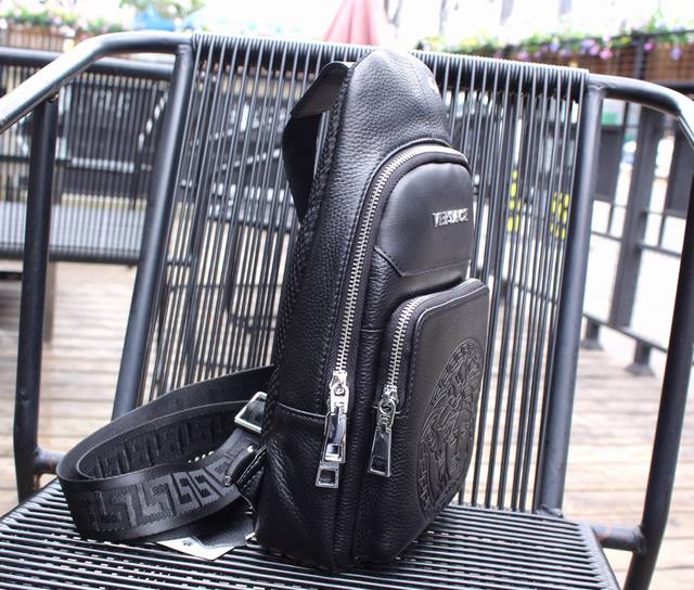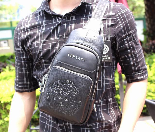 胸包顶级高端大气进口原版头层牛皮,耐磨耐。资深裁缝立体剪裁完美版型上身效果极佳设计理念独特,实物拍摄.触摸可及的效果 尺寸:18X31X7Cm 型号:33031