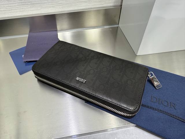 这款长款拉链式钱包低调而不失优雅气质。原单材料精心制作,内部为黑色光滑牛皮革材质。中间的拉链口袋可放置硬币,双层现金隔层和 12 个卡槽提供充足的收纳空间。优雅