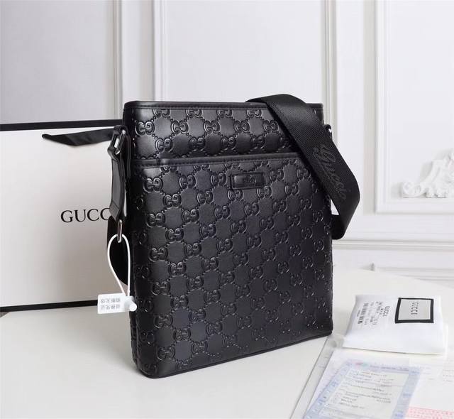 型号:33013-2~斜挎包黑色 古奇 Gucci 男士休闲系列挺阔流畅大方的楦型设计,以精湛缝线勾勒休闲的雅致情怀、描写男人自信的轮廓!看似简约的一款、实际做工相当复杂、[跳跳][跳跳][跳跳]非常简单经典。规格:24X27X6Cm