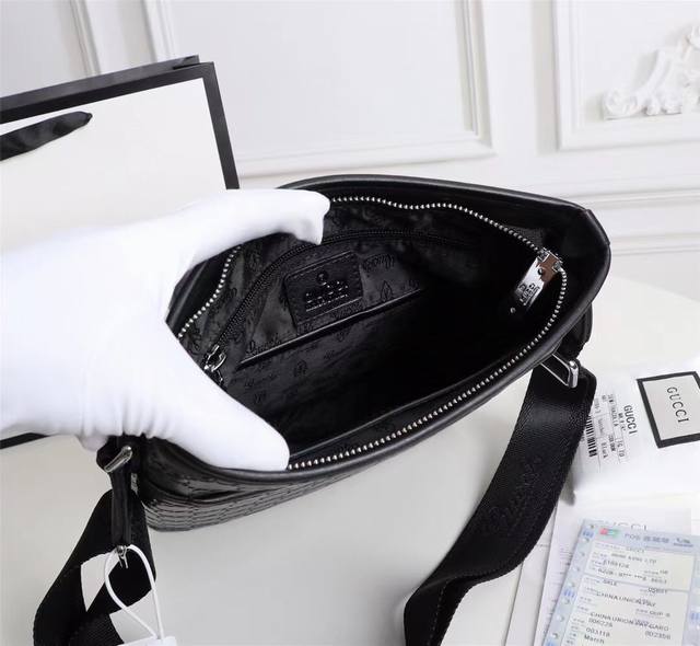 型号:33013-2~斜挎包黑色 古奇 Gucci 男士休闲系列挺阔流畅大方的楦型设计,以精湛缝线勾勒休闲的雅致情怀、描写男人自信的轮廓!看似简约的一款、实际做