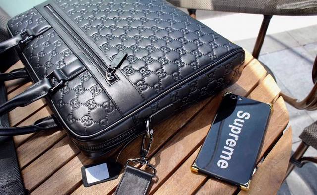 Guccl古奇 独家新款 型号 33113-5商务休闲包 尺寸 38X29X6Cm 颜色 黑色 高端品质 顶级做工 材质 古奇Guccl 专柜代购新款原厂进口头