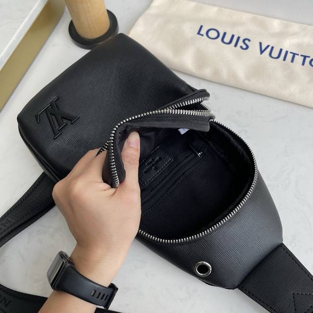 原单货 最新款式 Lv 男士胸包火爆出货 实物拍照无添加任何效果 原版进口头层牛皮贴心设计耳机线钻孔,采用专用五金.原版里布资深裁缝独特休闲高档风格