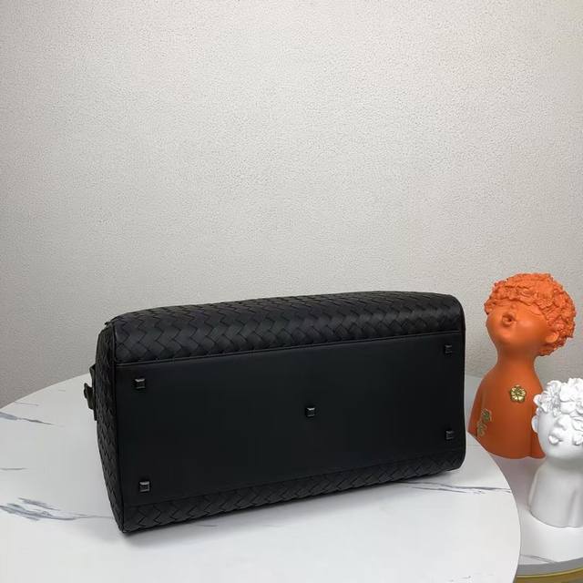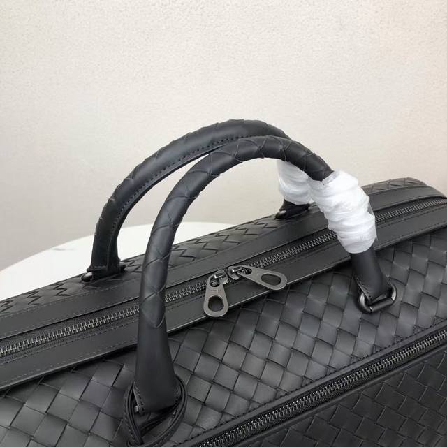 Bottegaveneta葆碟家新款编织手提袋,单肩斜挎旅行包,全编织的Bv一直是最经典的,整个包几乎找不到一个Logo,一直是最低调奢华的奢侈品牌,全包采用进口定制小牛皮制成,革新的柔软编织面料,简约而不简单的设计。它的皮质柔软细腻,超有质感,也不容易刮花,随便用也不心疼。加固的皮革手提带软软的,拎起来特别舒服,搭配装卸式肩带,长短随意调节,可手提和斜挎。双向拉链头,拉链可以拉到最底部,加宽了内部空间。内里也是柔软的小牛皮材质,质感满满的,只有一个拉链内袋,容量超级无敌大。底部有六个优质金属底座,防尘防