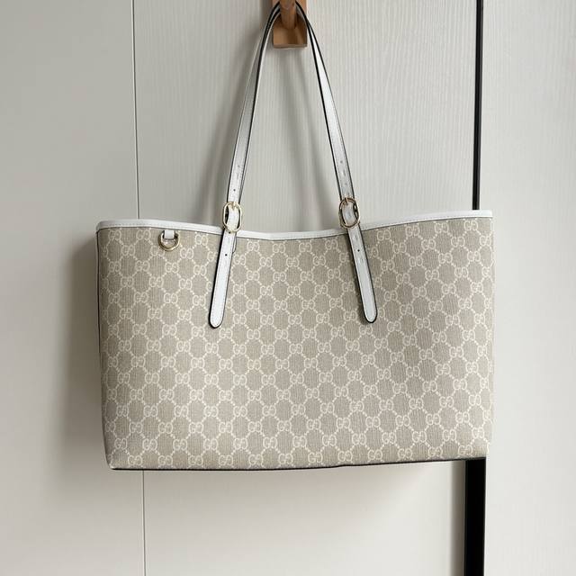 实拍# 大号 型号:815213 尺寸:38X25.5X15Cm 这款购物袋Gg图案和条纹织带这两种品牌颇有辨识性的元素融合成经典搭配,Ophidia世界的演化