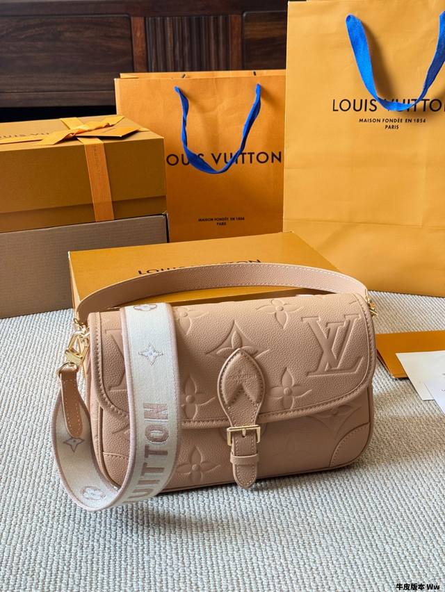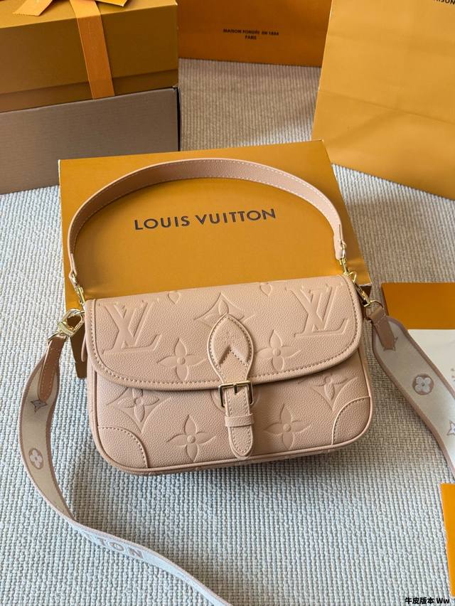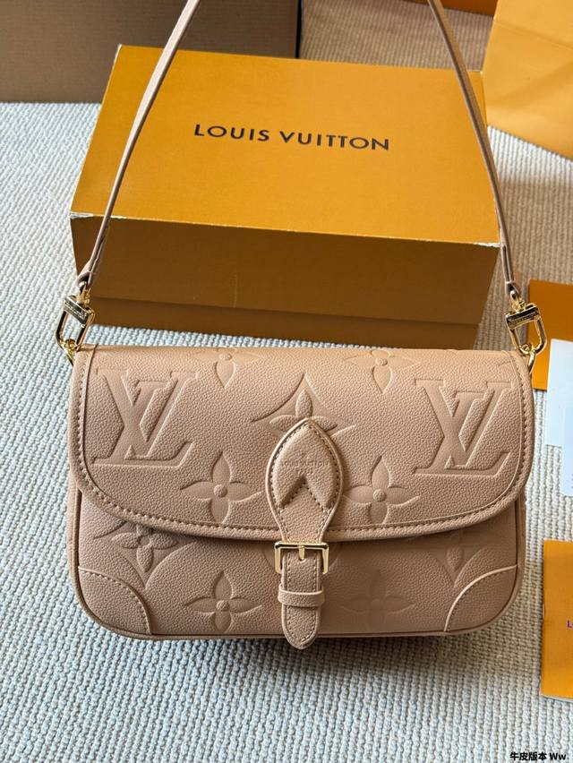 牛皮版本 Lv Louis Vuitton |Diane法棍包 Lv法棍Diane绝绝子 上身复古又舒服 设计灵感来自于中古包Sologne 两条肩带 手拿腋下