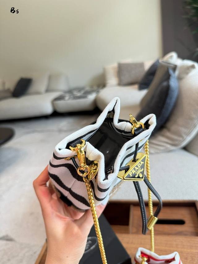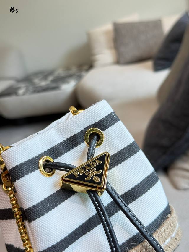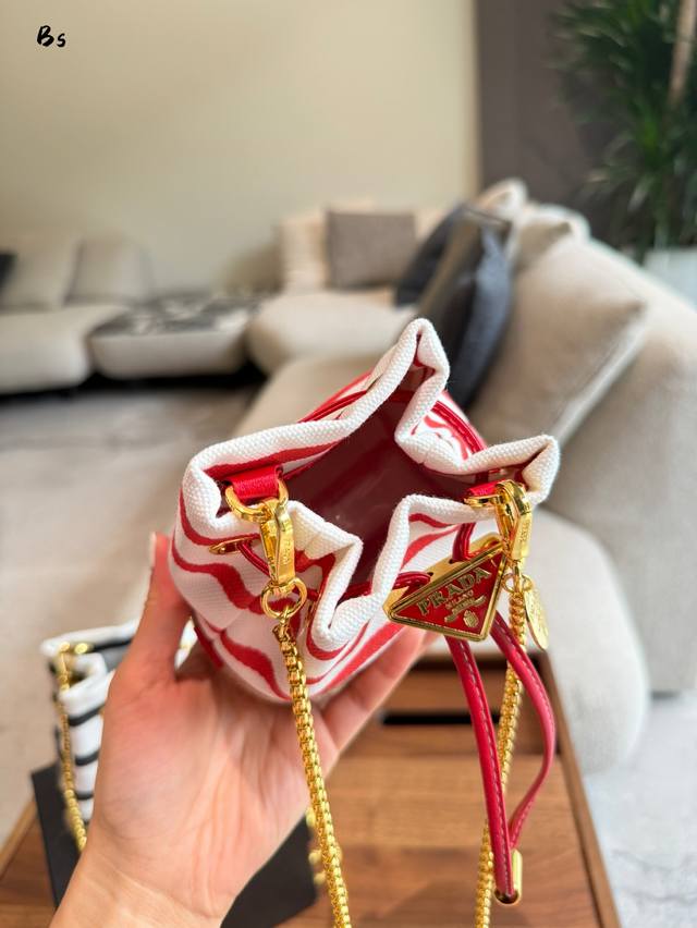 普拉达新款条纹水桶包