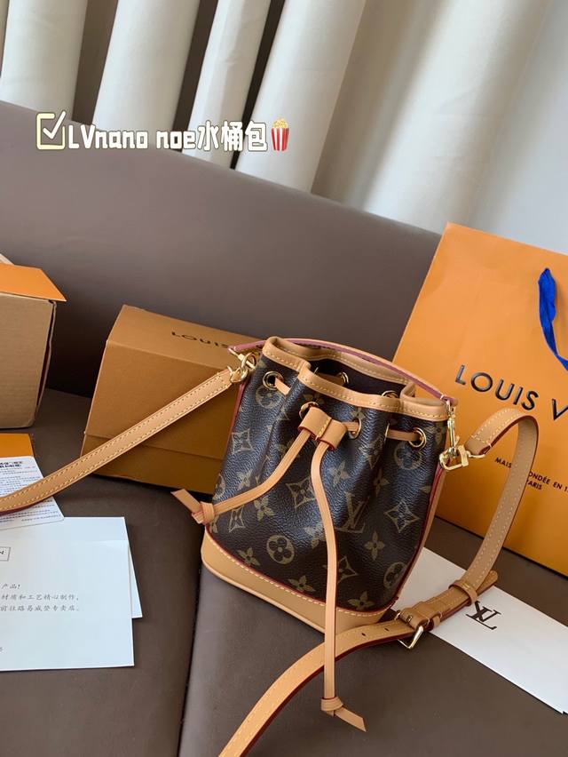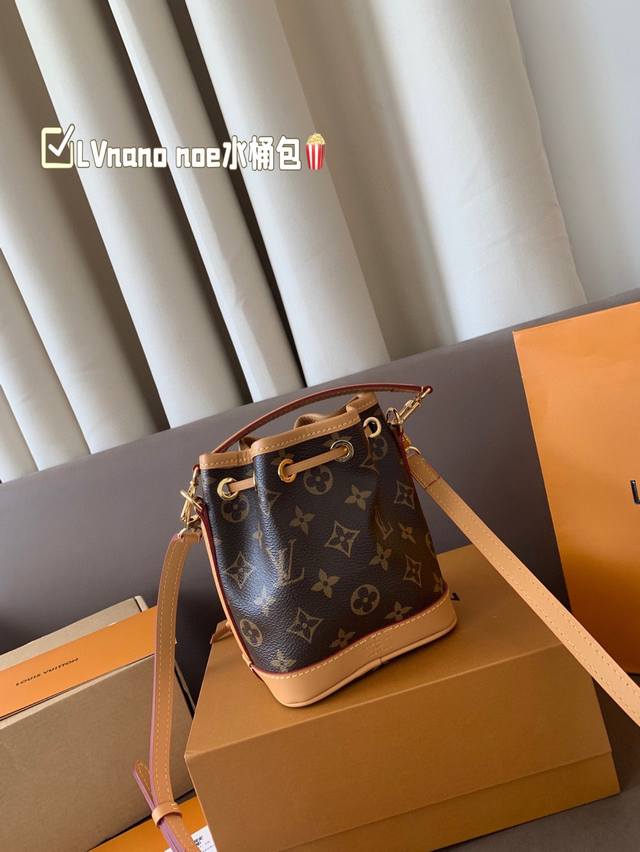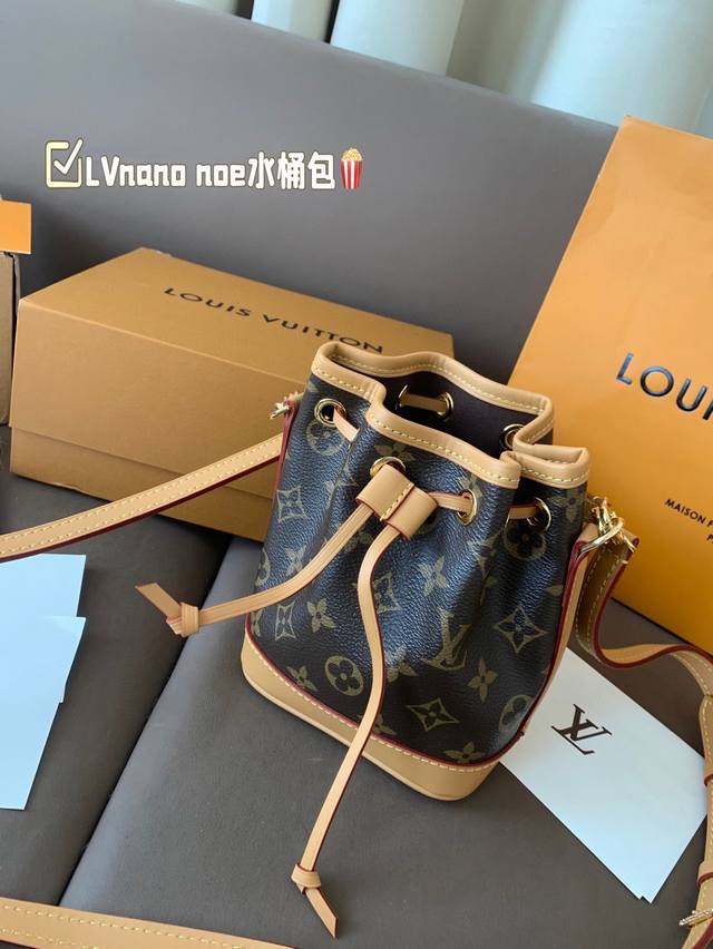 变码芯片 钢五金 折叠盒飞机盒 Lv路易威登 Nano Noe水桶包 包身立体有质感,抽绳自由收缩! 复古和实用性更强 肩带拆卸也可手拿手挽~ 百搭耐看,可以H