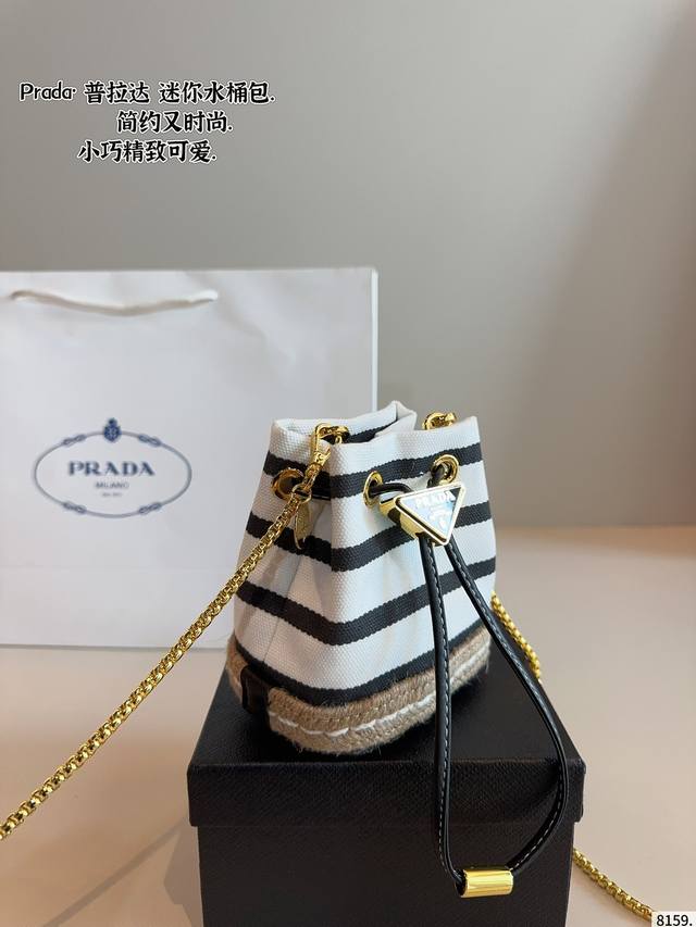 配礼盒. Prada普拉达新款 水桶包. 可手提 单肩斜挎 时尚新宠儿 各路明星 网红同款追捧 尺寸:11*8*13Cm