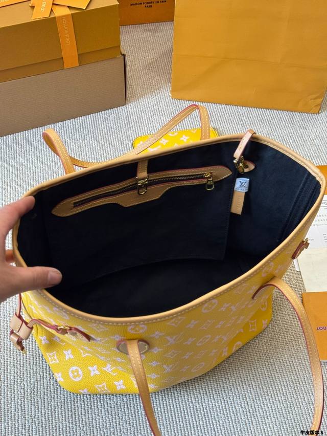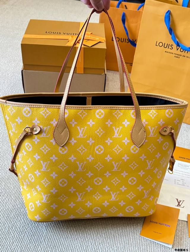 Lv 牛皮 Lv Neverfull 樱桃印花 中号购物袋!入门级的款式哦!绝对的终身款!此物经典不言而喻!街拍和实用都是非常Nb的选择!大家拿到后可以感受下,皮质颗粒之间空袭分明,宽度平均,摸上去软硬适中,变色皮哦!尺寸 :32 *28 密封折叠礼盒包装 配海关贴 发票 免税店证书