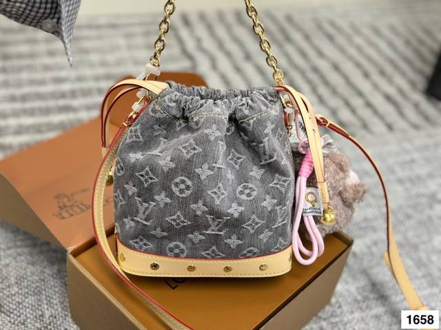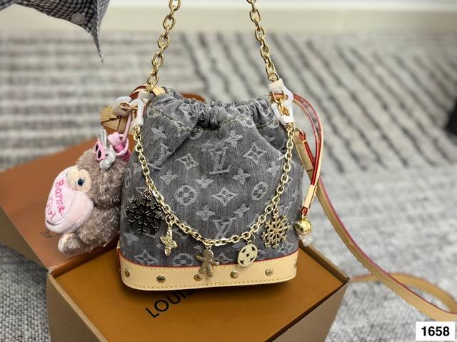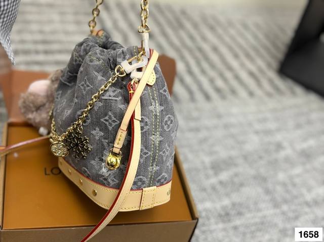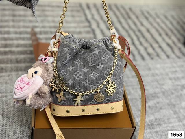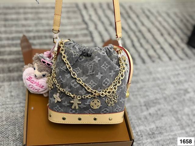 配飞机盒折叠盒子 Lv 牛仔水桶包 大容量单肩斜挎包 采用精湛镶嵌细工,经典百搭简直无法拒绝 超显气质 高级感十足 集美必入款 尺寸:18 20