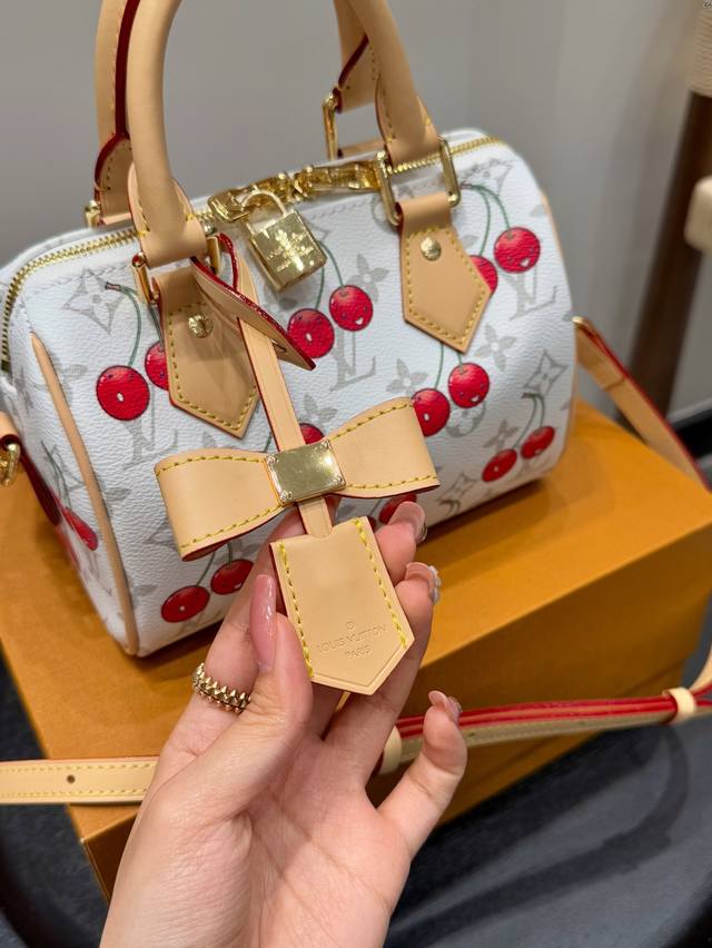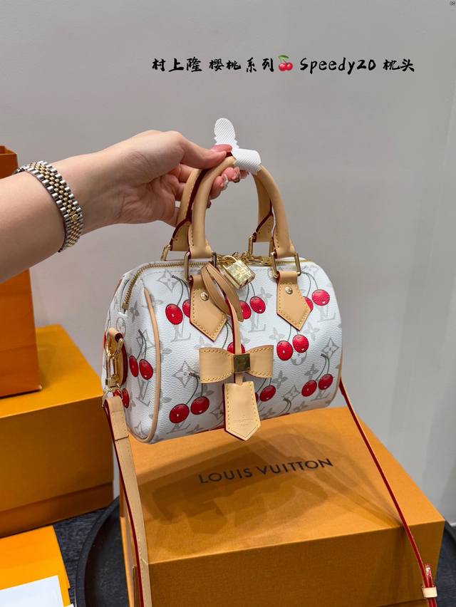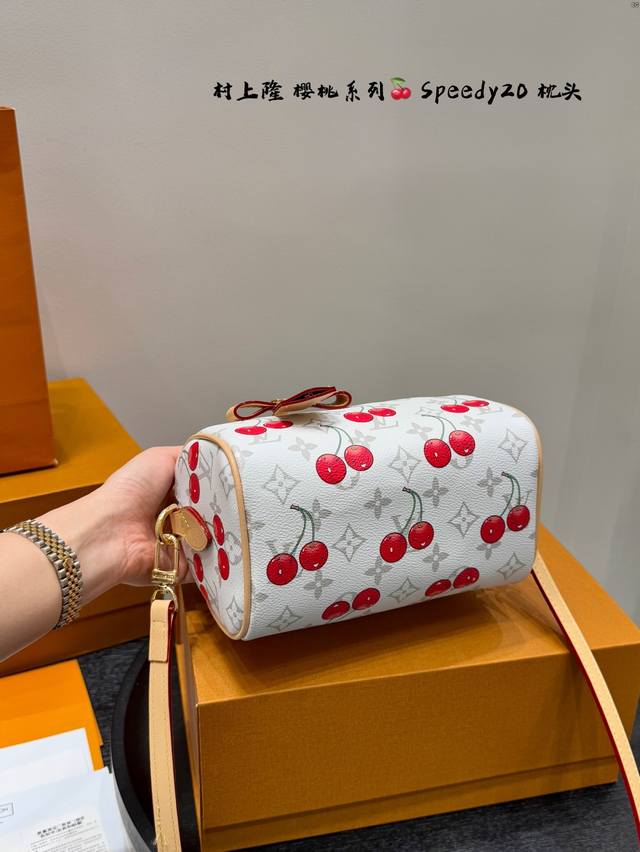 / 全套礼盒 Lvspeedy20樱桃枕头包|是谁把可爱背出了街 手提枕头包 Lv与村上隆的联名限量款 樱桃与经典白花的结合 让包包又可爱又俏皮 少女感满满 尺寸
