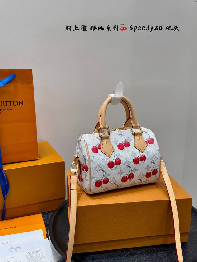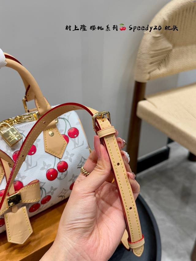 全套礼盒 Lvspeedy20樱桃枕头包|是谁把可爱背出了街 手提枕头包 Lv与村上隆的联名限量款 樱桃与经典白花的结合 让包包又可爱又俏皮 少女感满满 尺寸