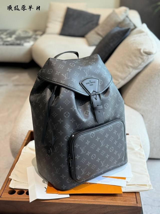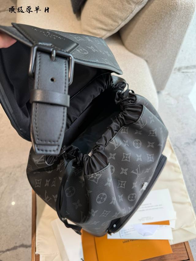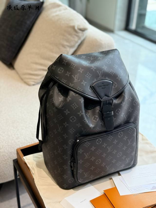 / Iv黑老花双肩包 :路易威登 Louis Vuitton黑老花双抽绳双肩包23年发票 芯片款经典老花配尘袋小票尺寸: 32X40X19包形实用 旅行出差通勤一包
