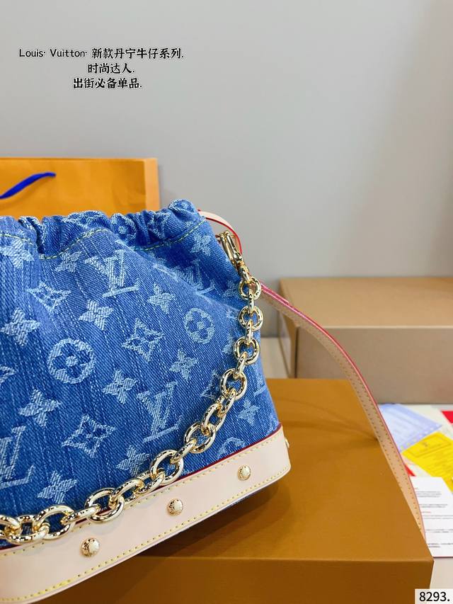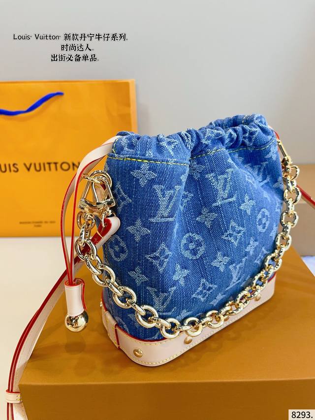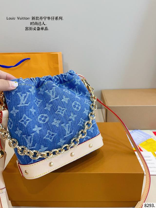 / 配礼盒. Lv丹宁牛仔水桶包. 真的很高级 日常通勤简直绝配 可盐可甜 极致美感 绝美女孩就是你尺寸:18*9*18Cm