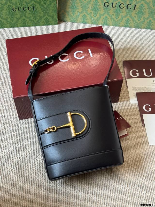 在2025春夏系列中,Gucci73系列从与其系列名同年推出的一款典藏水桶包中撷取创作灵感。这款包袋以现代美学演绎马衔扣造型配件,可以斜挎、肩背,也可以作为手提包使用。