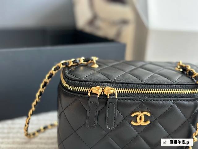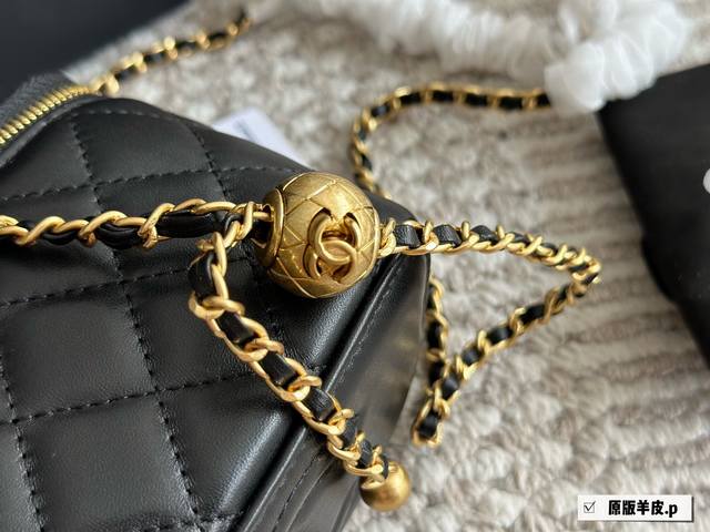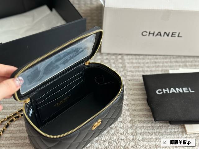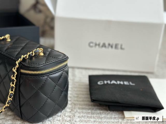 / 羊皮 香奈儿经典手柄盒子包 百看不腻之“手柄盒子包”实物超可爱 内里配备镜子0也叫“化妆包” 羊皮实用性高搭配浅金色五金,手柄处还有小Logo超精致+颜值非常抗