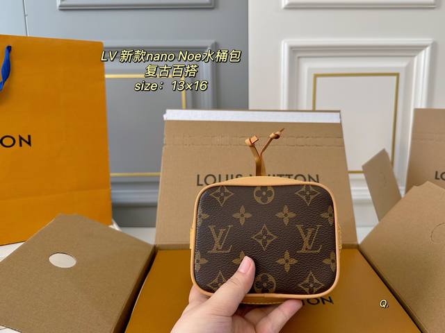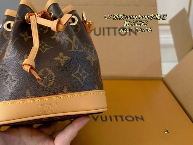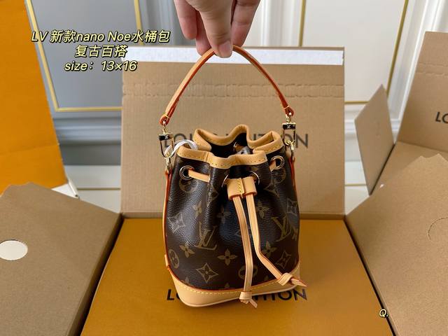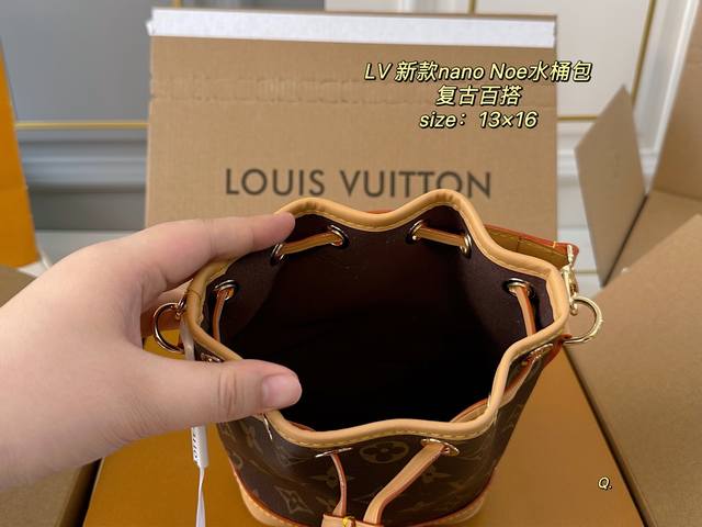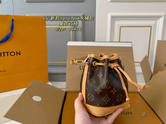 折叠盒飞机盒 Size:13×16 Lv路易威登Nano Noe水桶包 包身立体有质感,抽绳自由收缩! 复古和实用性更强 肩带拆卸也可手拿手挽~ 百搭耐看,可以