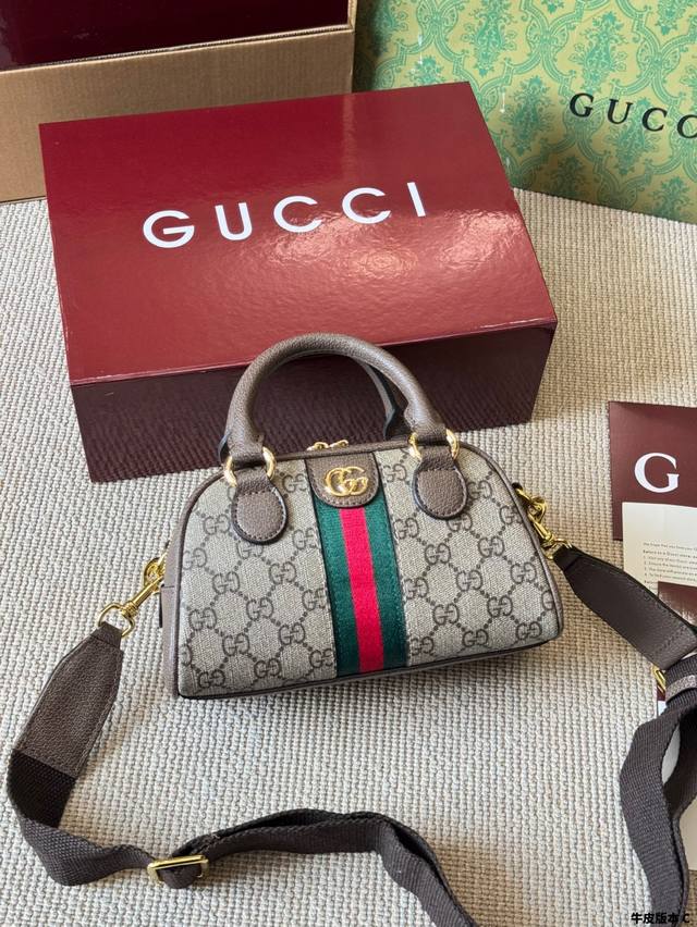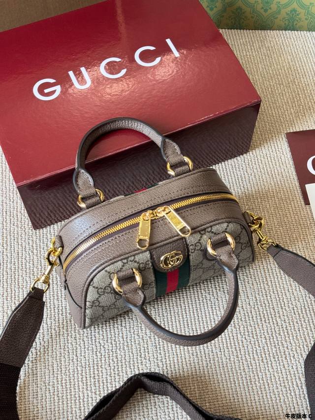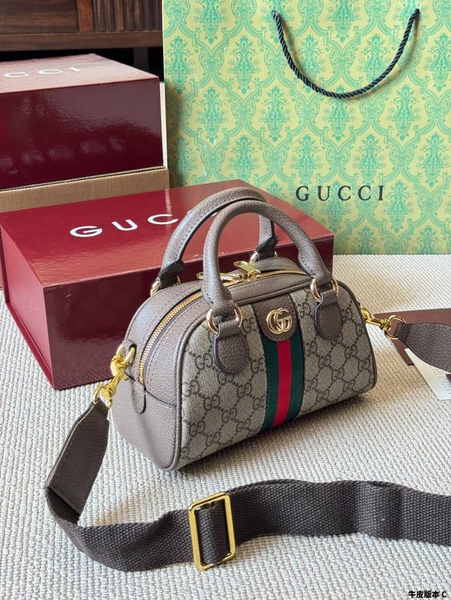 牛皮版本 Gucci Ophidia 波士顿桶包 最新系列,链条包,配原版乌木色牛皮~这个款复古韵味特别浓,对版链条,原版内里!上身效果也超赞,主要以精致特别的