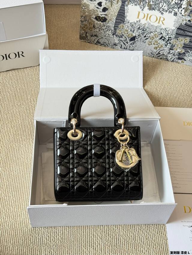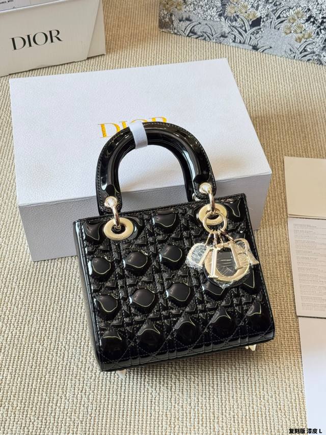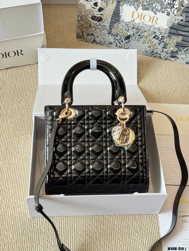 复刻版 漆皮 |全套包装Dior 迪奥戴妃包| Dior Lady羊皮绝美手袋 真的是太美了 好Lady风 五金好漂亮 好适 肩带可调节!爱了爱了! 尺寸:24