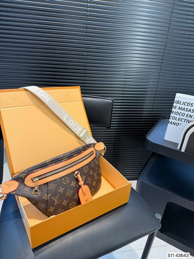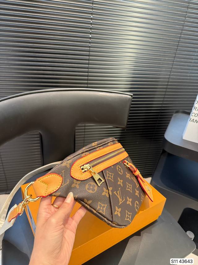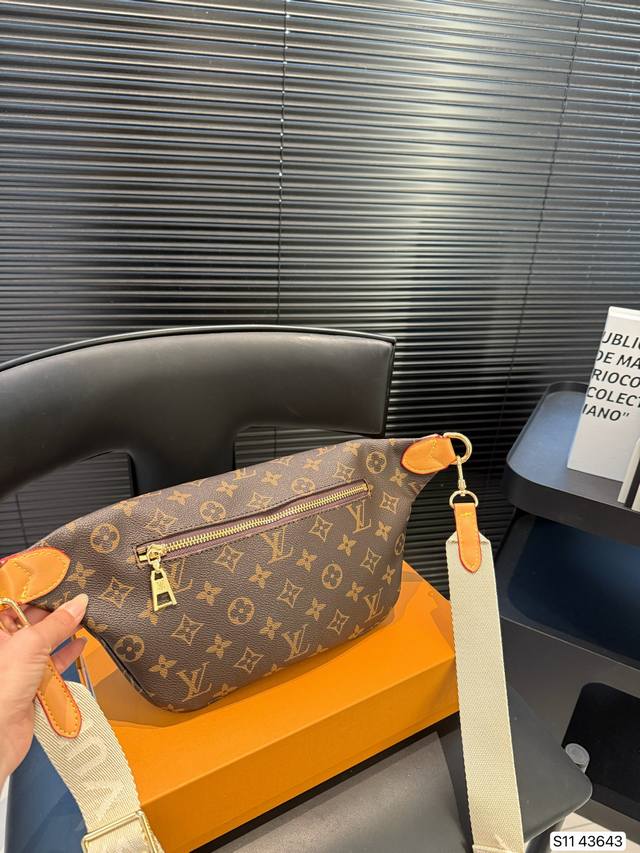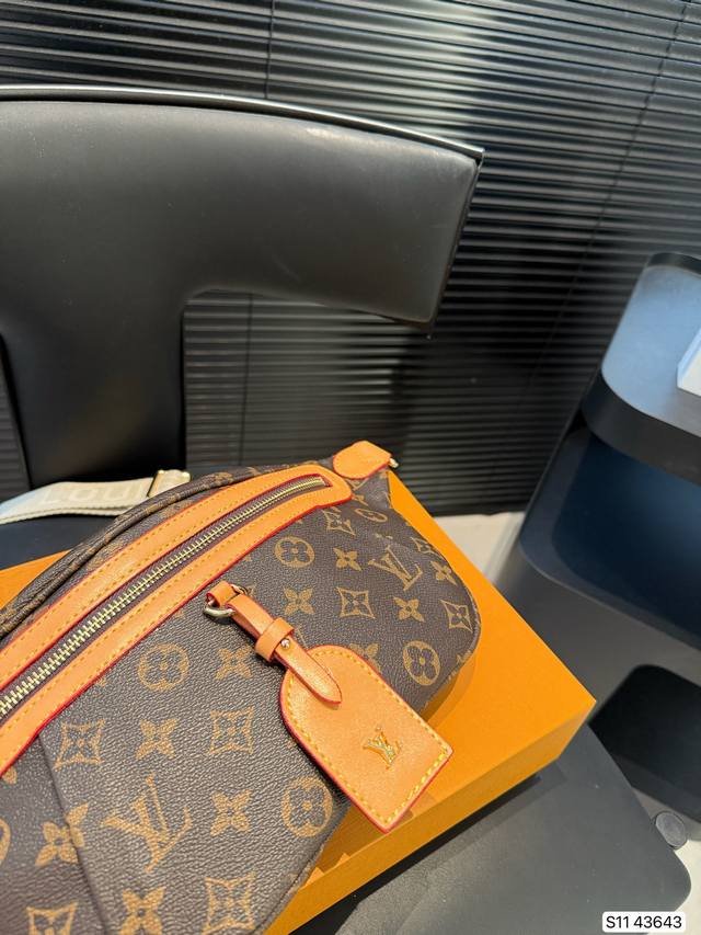 配折叠盒子 Lv 胸包腰包,配有可调节的包带,既可环于腰间,也可肩背或随性地挂在胸前。正面和背面配有拉链口袋,方便存取 手机、卡片和钥匙。尺寸:38 18 货号43643